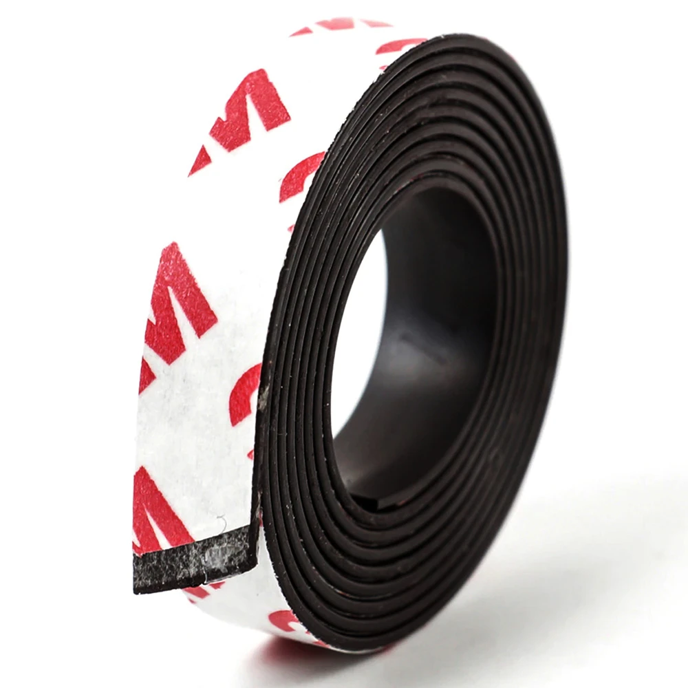 Flexible easy to cut, great material for DIY fridge magnets, you can use this to fix pictures/notes on whiteboard/ fridge doors, and so on. The dark side is magnetic; the white side is adhesive.
