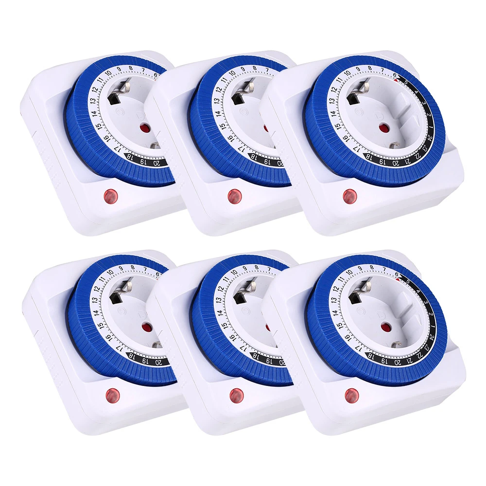 This is a 24 hours plug-in mechanical grounded programmable timer switch. It features 48 sets of switch timing (15 minutes-24 hours) and 16A large power, making it easily apply to most home appliances’ intelligent settings.