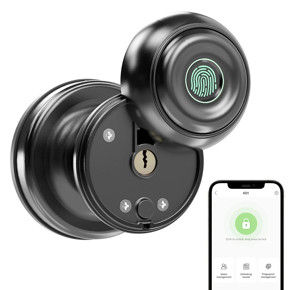 The biometric door knob extended the classical door knob design, equipped with a fingerprint lock function and modern App control, it is ideal for bedroom doors, offices, apartments, and hotels.