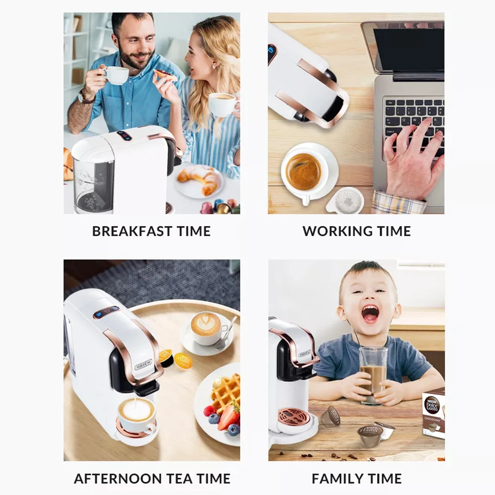 This coffee maker is equipped with 4 adapters: Nes capsule adapter, ESE pod adapter, DG capsule adapter, and ground coffee adapter, so that you can always find one for your beverage.