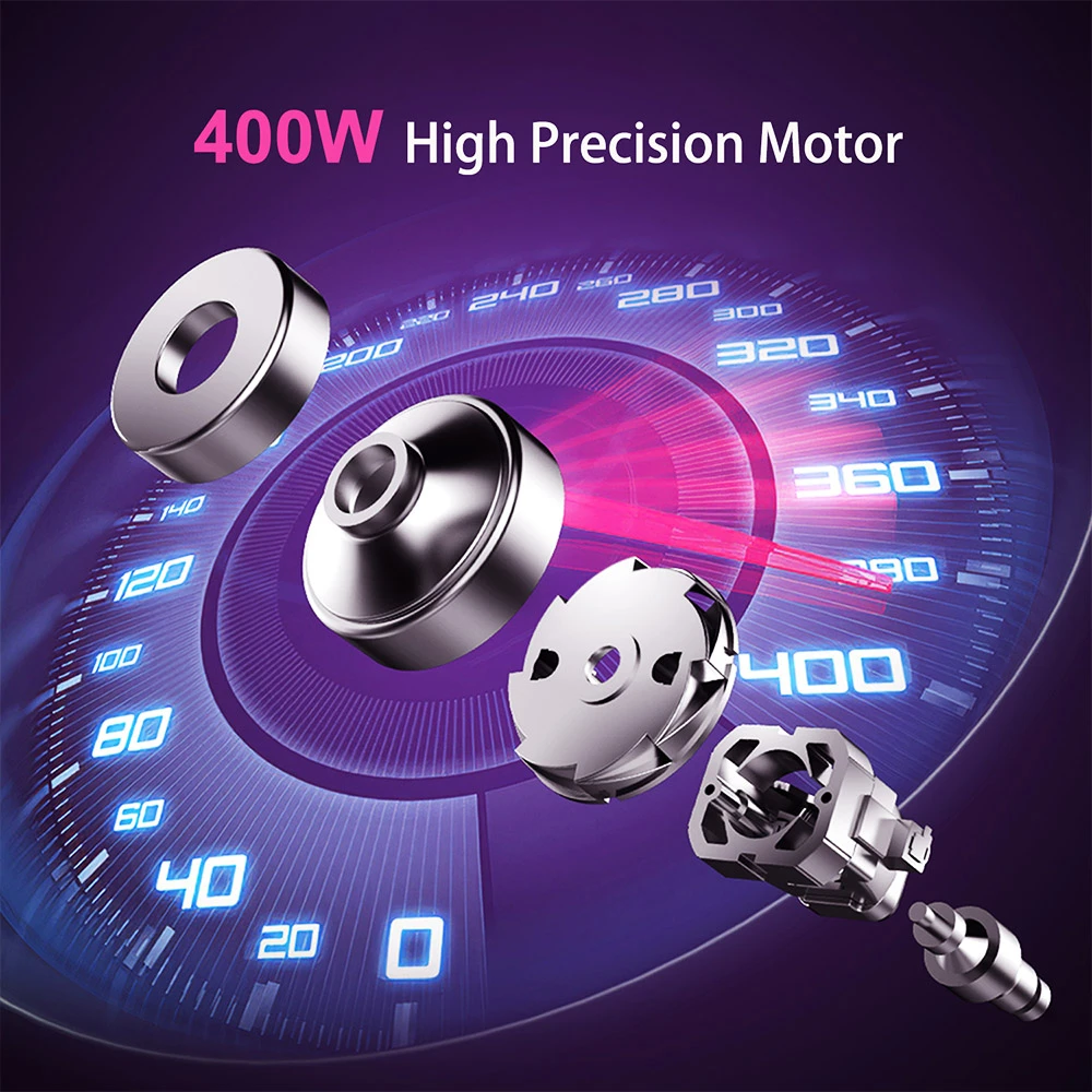 400W motor provides enough suction to vacuum dust mites, bacteria, viruses, pollens, and other allergens deep from bedding, mattress, furniture, curtains, upholstery, and other fabric surfaces.