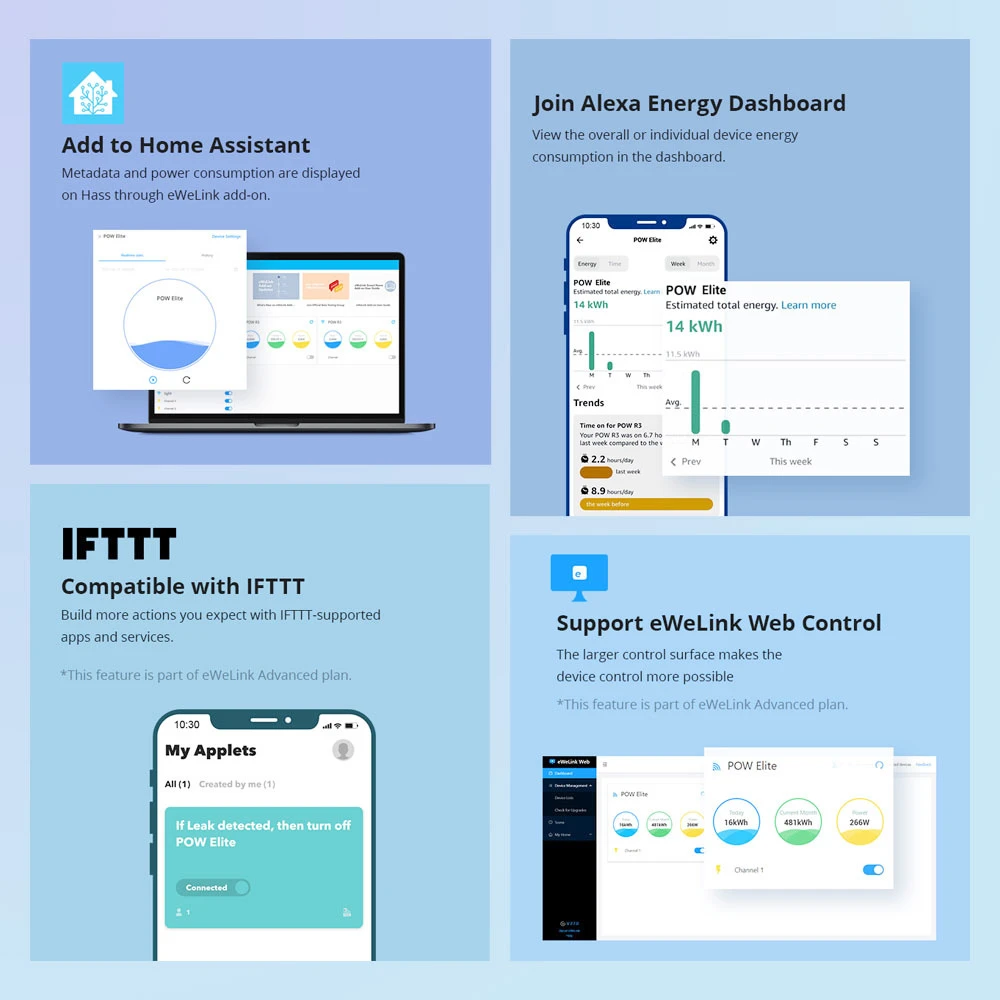 POW Elite has all the most basic functions, like App control, voice control, LAN control, timing schedule, inching setting, power on state, etc.