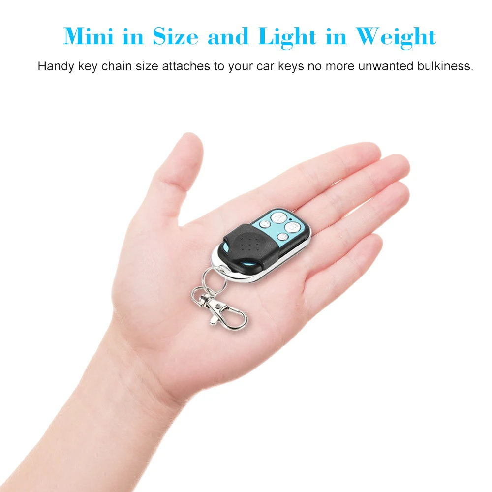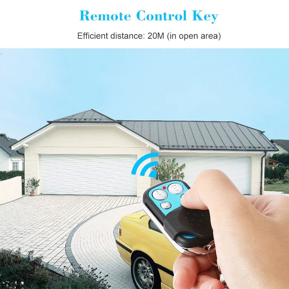 4 buttons to operate 4 different garage doors, electronic rolling gates or retractable doors with RF 433MHz.