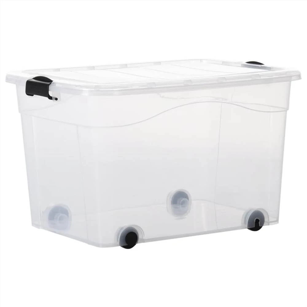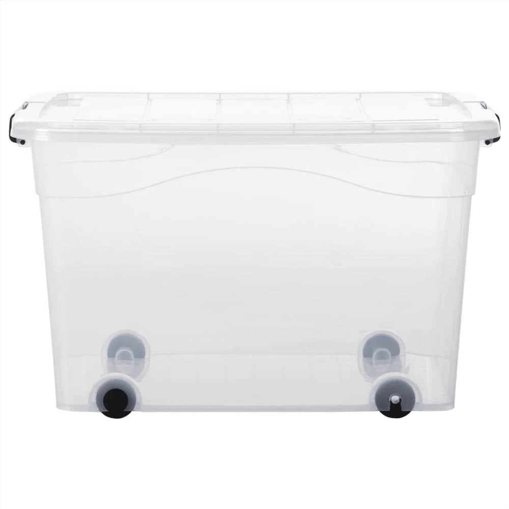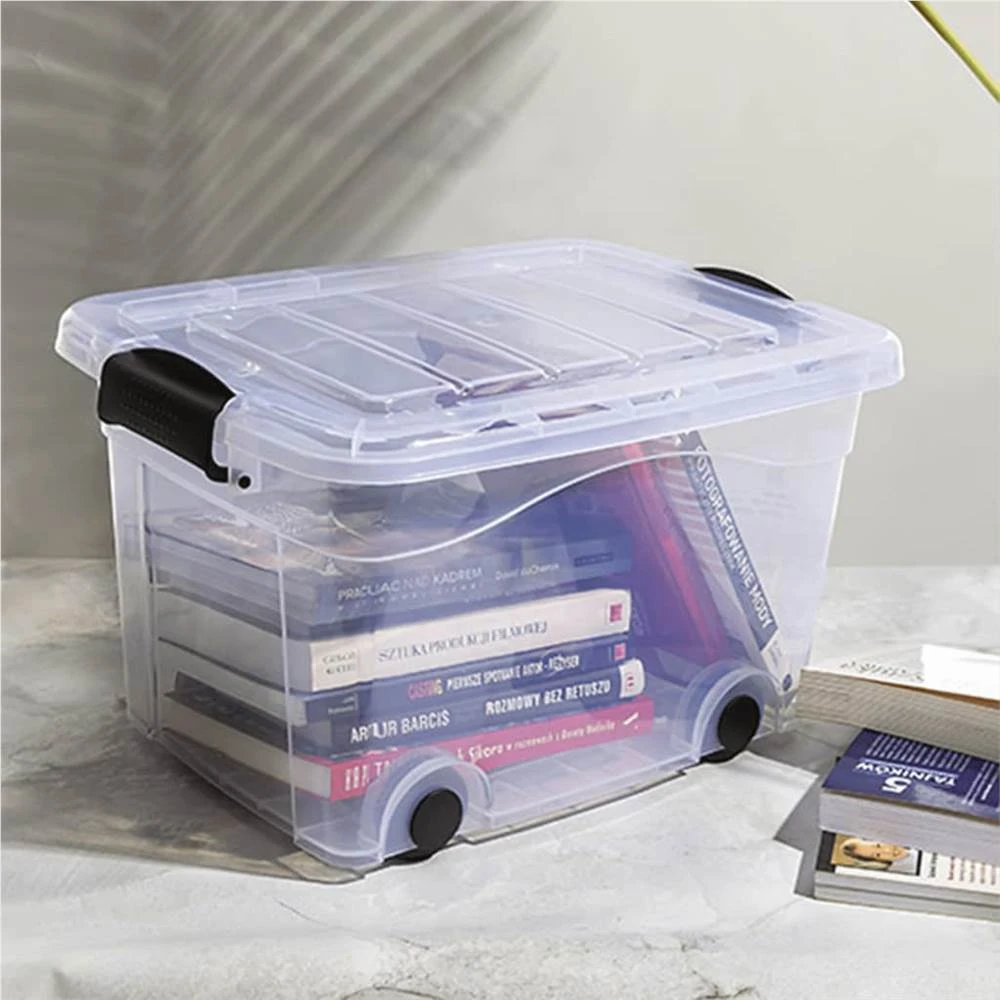 These storage boxes are brilliant for storing all life’s little items. They are perfect for organising, tidying and sorting. These storage bins are made of 100% PP (Polypropylene), making them sturdy, durable and easy to clean. The transparent bases allow you to see the contents of the box at a glance. Thanks to the stackable design, the storage containers are nestable when not in use to save storage spaces. The firm latches on both sides can be tightly attached to the groove on the lid, protecting the contents of the box from getting dirty or wet. The four wheels on the bottom make it easy to move the container, even when stacked, on surfaces. Additionally, the boxes are food safe, so they are also suitable to store condiments, spices, snacks, drinks, and other food.