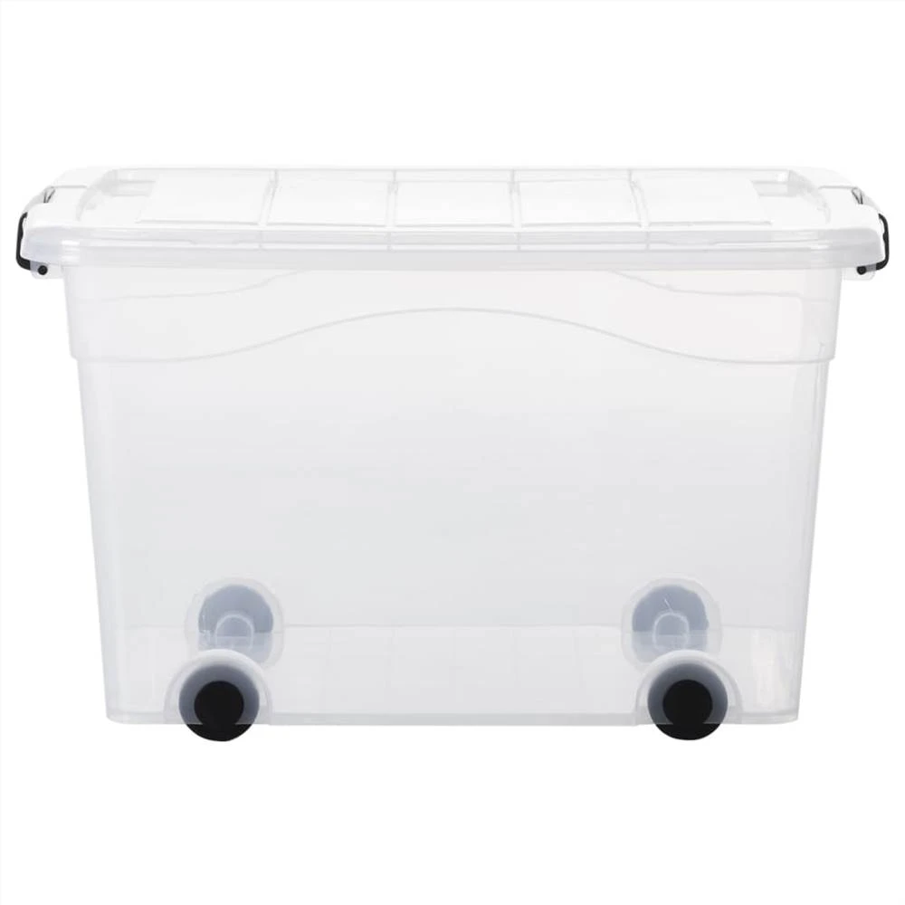 These storage boxes are brilliant for storing all life’s little items. They are perfect for organising, tidying and sorting. These storage bins are made of 100% PP (Polypropylene), making them sturdy, durable and easy to clean. The transparent bases allow you to see the contents of the box at a glance. Thanks to the stackable design, the storage containers are nestable when not in use to save storage spaces. The firm latches on both sides can be tightly attached to the groove on the lid, protecting the contents of the box from getting dirty or wet. The four wheels on the bottom make it easy to move the container, even when stacked, on surfaces. Additionally, the boxes are food safe, so they are also suitable to store condiments, spices, snacks, drinks, and other food.