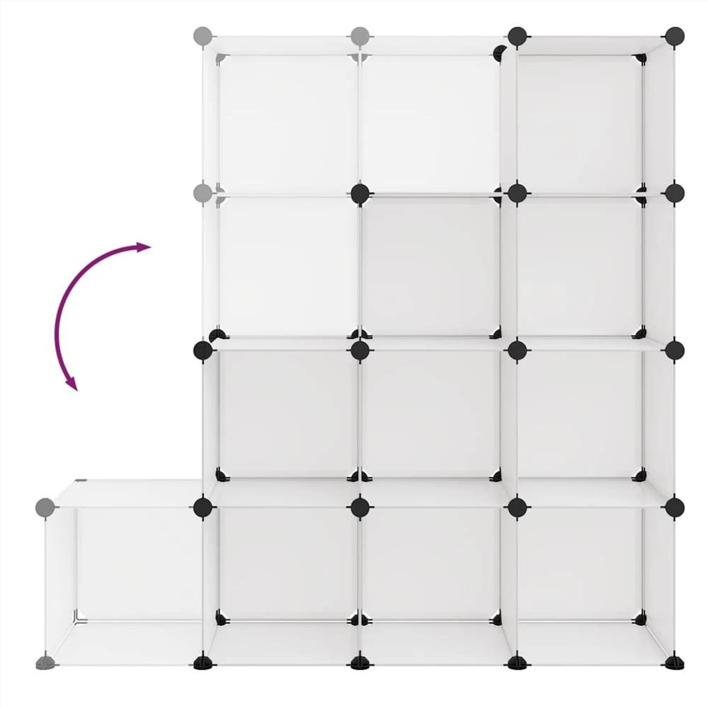 This versatile storage cube organiser is meant to make the best use of the limited space and satisfy your various storage needs. Practical material: The storage organiser is made of PP plastic panels, which are waterproof and need low maintenance.Strong and stable structure: The steel frames ensure sturdiness and stability.User-friendly design: Thanks to the lightweight design, the storage shelf can be assembled to your liking with the included wood hammer. When not in use, it is easy to separate the panels and stack them to save space.Ample storage space: This plastic closet contains 12 modular cubes. The storage space makes it easy to keep things organised.Wide applications: With large storage space and a simple design, the storage rack is an excellent storage solution for your home, dormitory and office. Note:The maximum loading capacity of each cube is 10 kg.