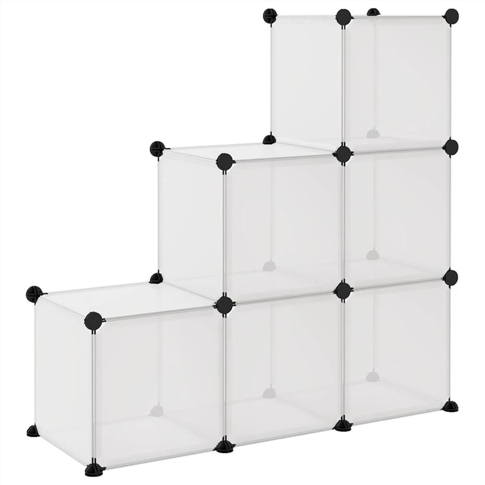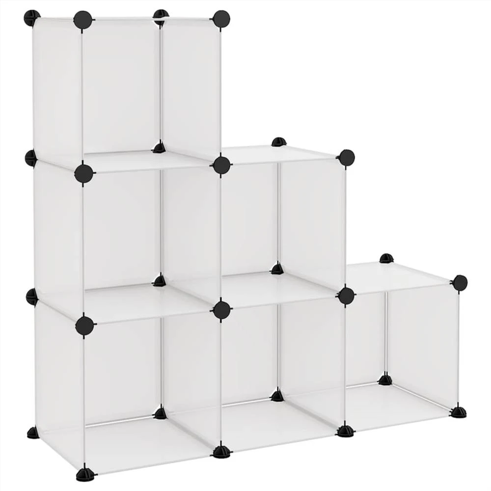 This versatile storage cube organiser is meant to make the best use of the limited space and satisfy your various storage needs. Practical material: The storage organiser is made of PP plastic panels, which are waterproof and need low maintenance.Strong and stable structure: The steel frames ensure sturdiness and stability.User-friendly design: Thanks to the lightweight design, the storage shelf can be assembled to your liking with the included wood hammer. When not in use, it is easy to separate the panels and stack them to save space.Ample storage space: This plastic closet contains 6 modular cubes. The storage space makes it easy to keep things organised.Wide applications: With large storage space and a simple design, the storage rack is an excellent storage solution for your home, dormitory and office. Note:The maximum loading capacity of each cube is 10 kg.