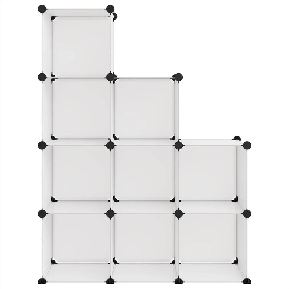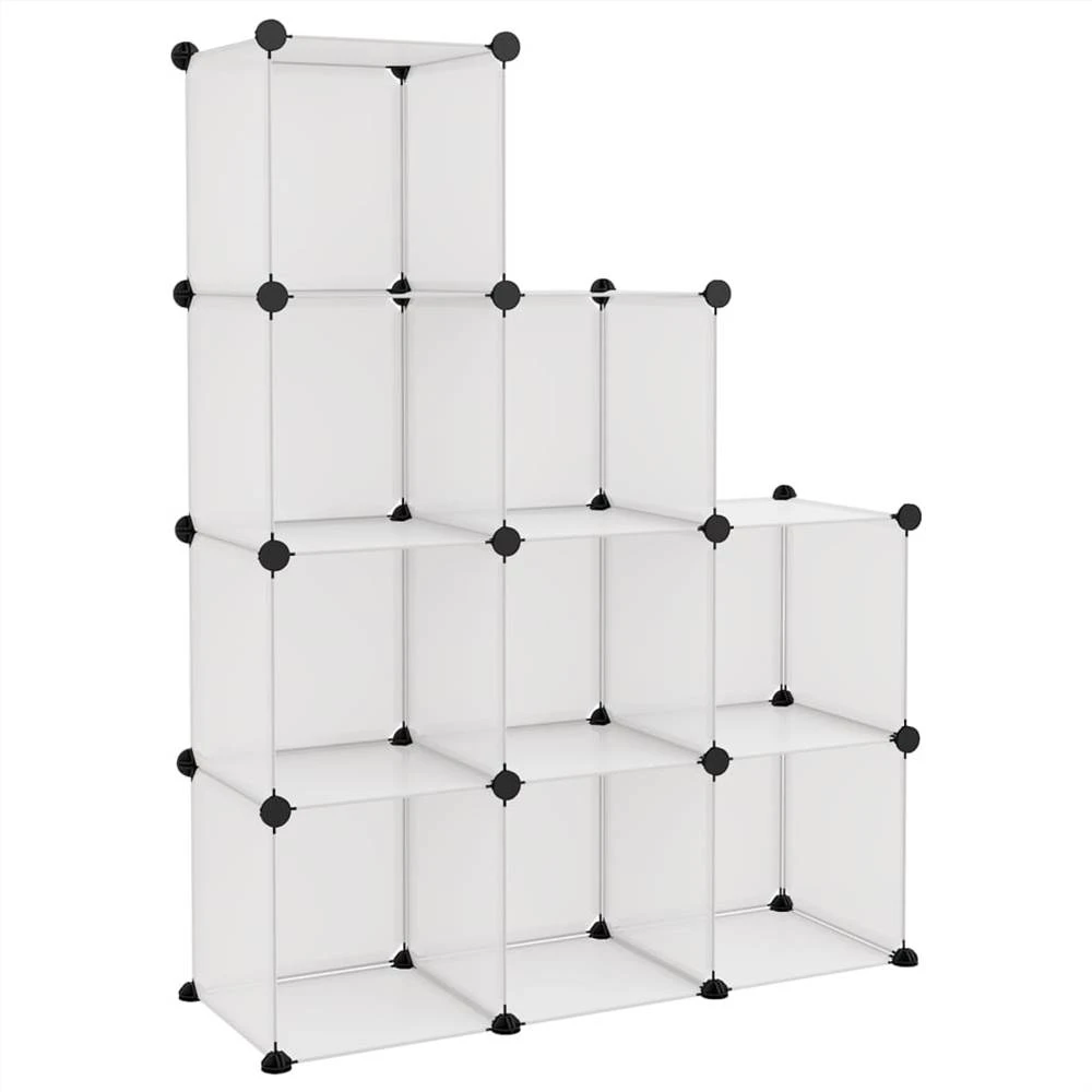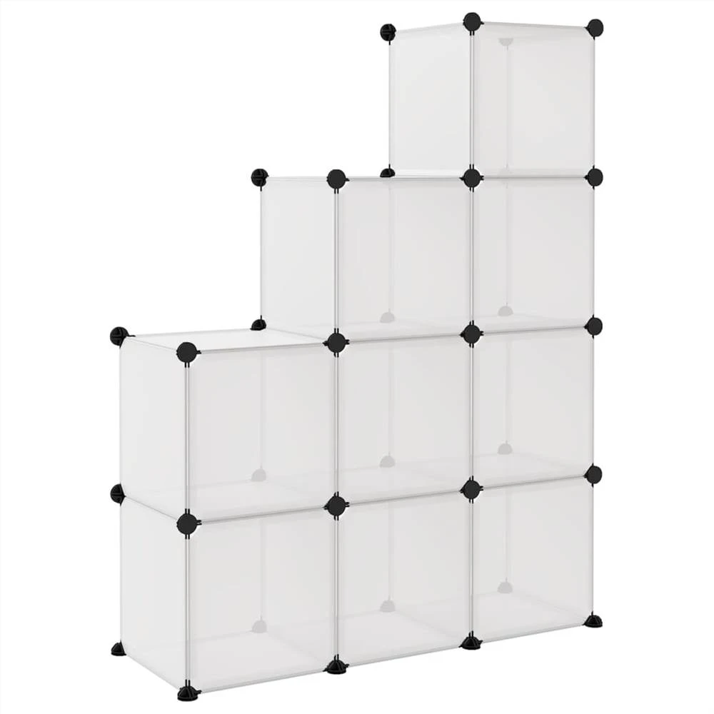 This versatile storage cube organiser is meant to make the best use of the limited space and satisfy your various storage needs. Practical material: The storage organiser is made of PP plastic panels, which are waterproof and need low maintenance.Strong and stable structure: The steel frames ensure sturdiness and stability.User-friendly design: Thanks to the lightweight design, the storage shelf can be assembled to your liking with the included wood hammer. When not in use, it is easy to separate the panels and stack them to save space.Ample storage space: This plastic closet contains 9 modular cubes. The storage space makes it easy to keep things organised.Wide applications: With large storage space and a simple design, the storage rack is an excellent storage solution for your home, dormitory and office. Note:The maximum loading capacity of each cube is 10 kg.