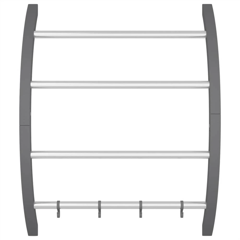 The trendy towel rack features a minimalist design, creating a simplistic and comfortable atmosphere in your bathroom. Sturdy frame: The aluminium frame of this towel holder ensures sturdiness and stability.Multiple usage: This towel ladder with 4 rods and 4 hooks provides a hanging place for towels and also can be used to hang other smaller objects, making your house tidier and more beautiful. Also, the rod spacing ensures good ventilation and cleanliness.Space-saving design: The towel shelf adopts wall-mounted design, which makes full use of your room space and provides you with extra storage space.