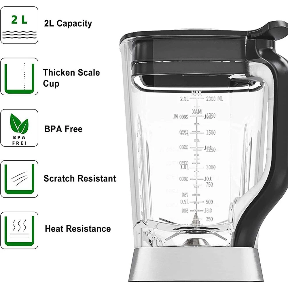 With professional 2L blender jar, it is durable and dirt resistant. In addition, the removable lid plug can add ingredients when blending. All food grade materials do not contain BPA. Easy self-cleaning with pulse function in just 30 to 60 seconds.